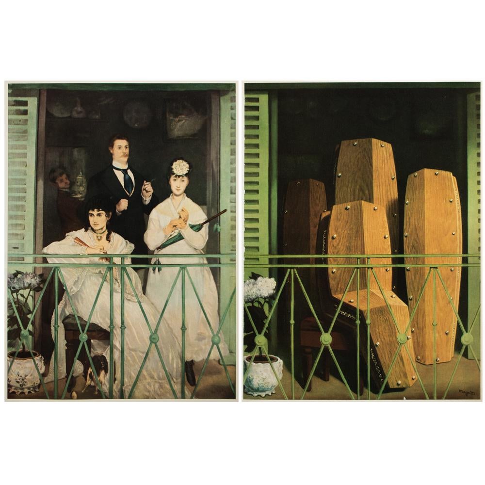 PS : Quand je lis ceci : " (....) un couple ne cesse de déménager pour laisser place à des cercueils mortuaires qui envahissent progressivement les appartements de leur immeuble.", je pense à cela : le Balcon de Manet revu par Magritte. ^^
